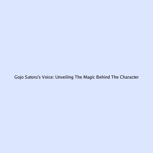 Gojo Satoru's Voice: Unveiling The Magic Behind The Character