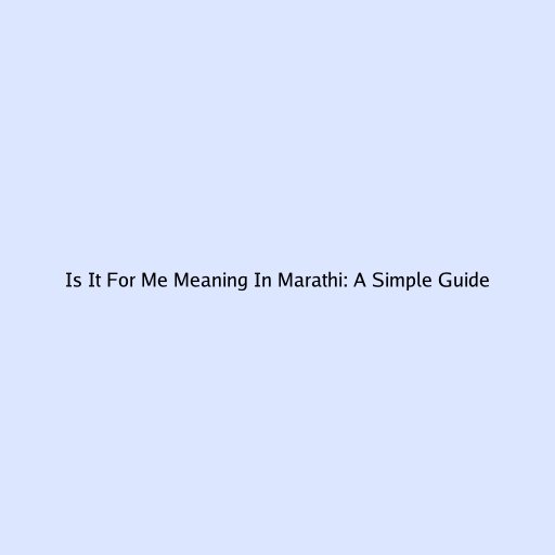 Is It For Me Meaning In Marathi: A Simple Guide