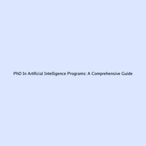 PhD In Artificial Intelligence Programs: A Comprehensive Guide