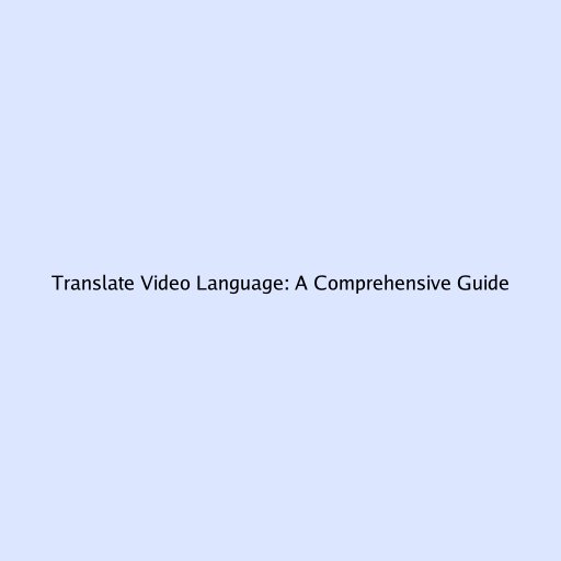 Translate Video Language: A Comprehensive Guide